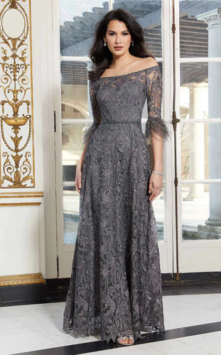 OFF-THE-SHOULDER SAPPHIRE COLUMN GOWN