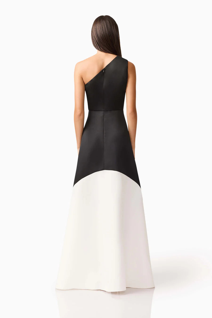 Dramatic yet refined, the Sorrel One Shoulder Gown in Black & White is a modern evening statement with architectural flair. Designed with a sleek one shoulder neckline, this gown plays with contrast and silhouette, blending bold monochrome tones in an elegantly sculpted form.