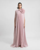 Description: Loose-cut kaftan with a draped flower on the shoulder.