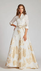 Teri Jon Jacquard Border Pattern Shirt Gown