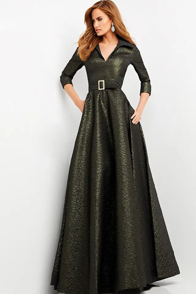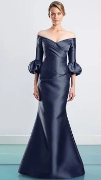 Teri Jon Large Floral Pattern Jacquard Off The Shoulder Gown