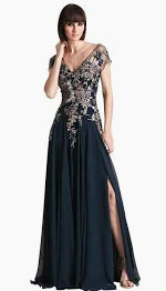 Mac Duggal Embroidered Applique Shoulder Detail Gown