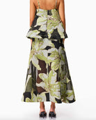 Effortlessly romantic, the Elysia Tiered Gown in Black & Green Floral is designed for special occasions that call for statement elegance. Cut from a floral jacquard fabrication, this gown showcases a rich woven texture and delicate floral motif that catches the light with every movement.