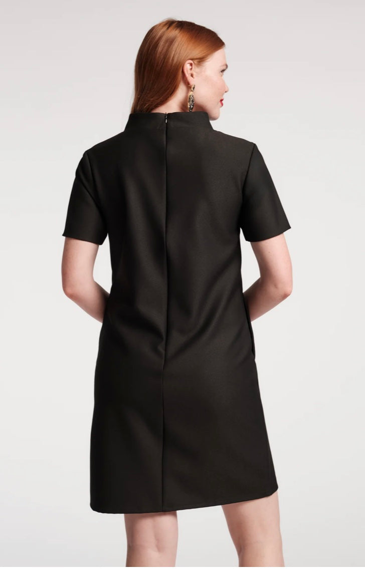 The Sarah Shift Dress redefines classic with a modern edge. Cut in a sleek, structured silhouette, it balances clean lines with thoughtful details, from its high neckline to sharp short sleeves and front flap pockets punctuated with polished buttons. Available in tailored black or textured tweed, Sarah is equally at home paired with a classic flat for a nod to mod, or styled with statement heel for a more refined finish. Elegant and versatile, this is the shift, evolved.