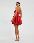Mac Duggal Red Strapless Mini Dress With Rose Ruffle Detail