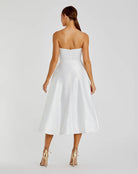 Mac Duggal White Strapless Satin Midi Dress With Flower Print