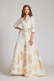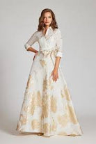 Teri Jon Jacquard Border Pattern Shirt Gown