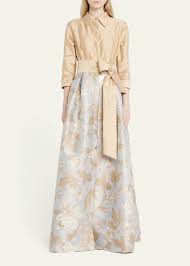 Teri Jon Taffeta Shirt Gown With Jacquard Floral Print