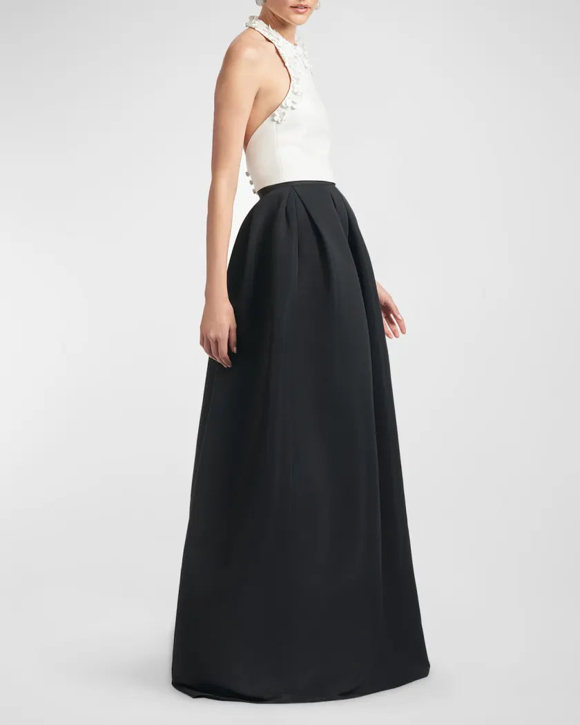 - Sachin & Babi Noir "Dominique" two-tone crepe gown with 3D floral appliqué