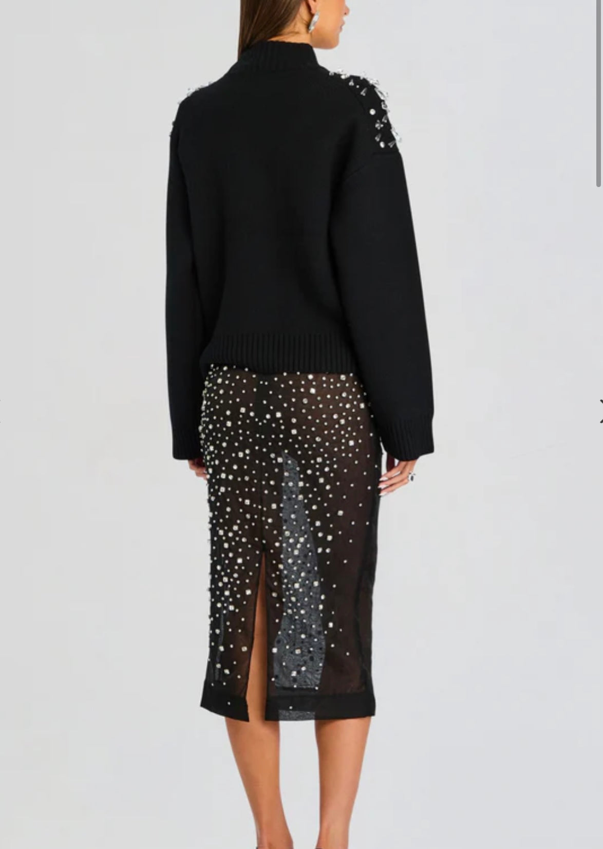 Beautiful sweater embellished with crystal beading adds a bit of sparkle to this mock turtle neck sweater, perfect day into evening piece for cool weather.