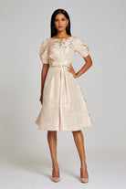 METALLIC JACQUARD PUFF SLEEVE DRESS