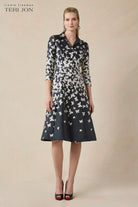 Teri Jon Mikado Butterfly Pattern Coat Dress