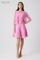 Teri Jon Knit Fit And Flare Lace Trim Dress